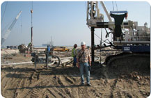 Отчет по окончании производства включает геометрию свай, геологический поскваженный разрез, расчет нагрузок рабочей части фундамента, лабораторные проверки бетонной и глинистой смесей, а также план AS Made |